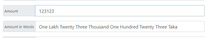 document.getElementById('inwords').value = inWords(document.getElementById('amount').value);