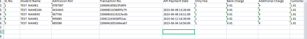 $sheet->setCellValue('E1', 'API Payment Date');